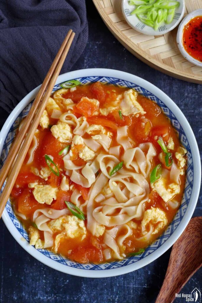 You don’t need complicated ingredients to make this soup. Most recipes use tomatoes, eggs, chicken broth, and simple seasonings like salt and sesame oil.